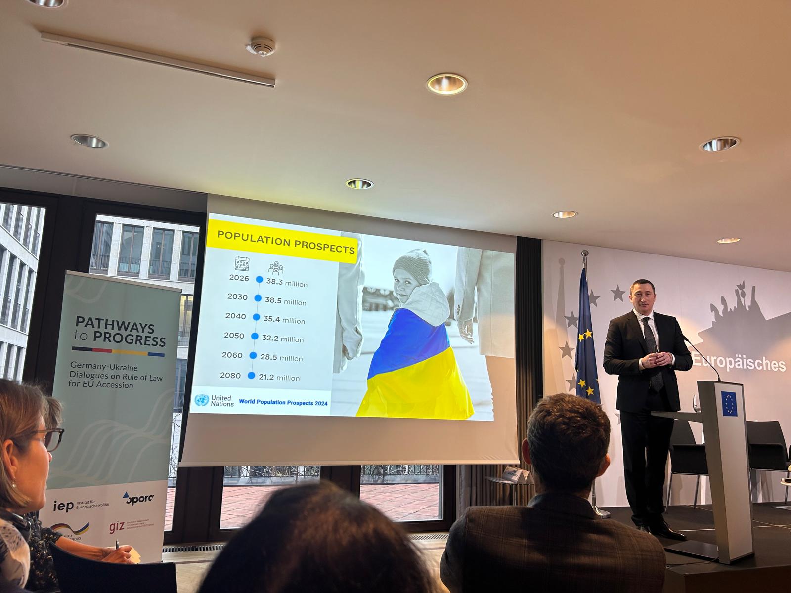 17 січня 2025 року ICMPD взяв участь у конференції «Шляхи до прогресу: Діалоги між Німеччиною та Україною про верховенство права для вступу до ЄС», що відбулася у Берліні у межах проєкту «Зміцнення адаптації України до ЄС у сфері верховенства права».